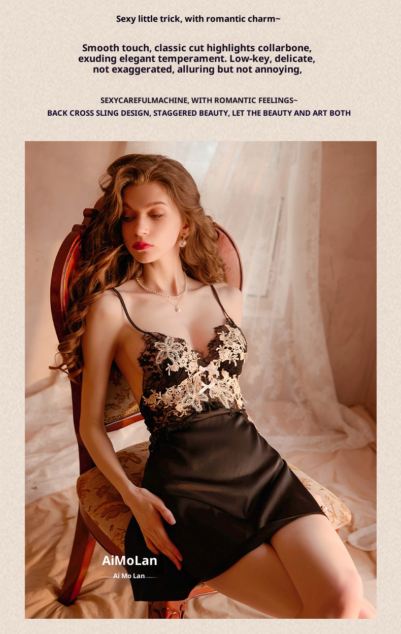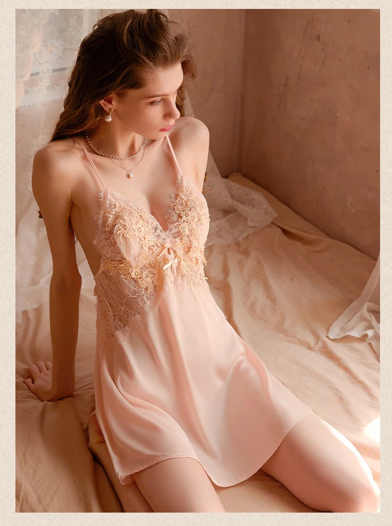 Elegant Floral Lace V-Neck Slip Nightdress